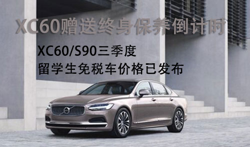 XC60赠送免费保养进入倒计时 | XC60/S90三季度留学生免税车价格已发布