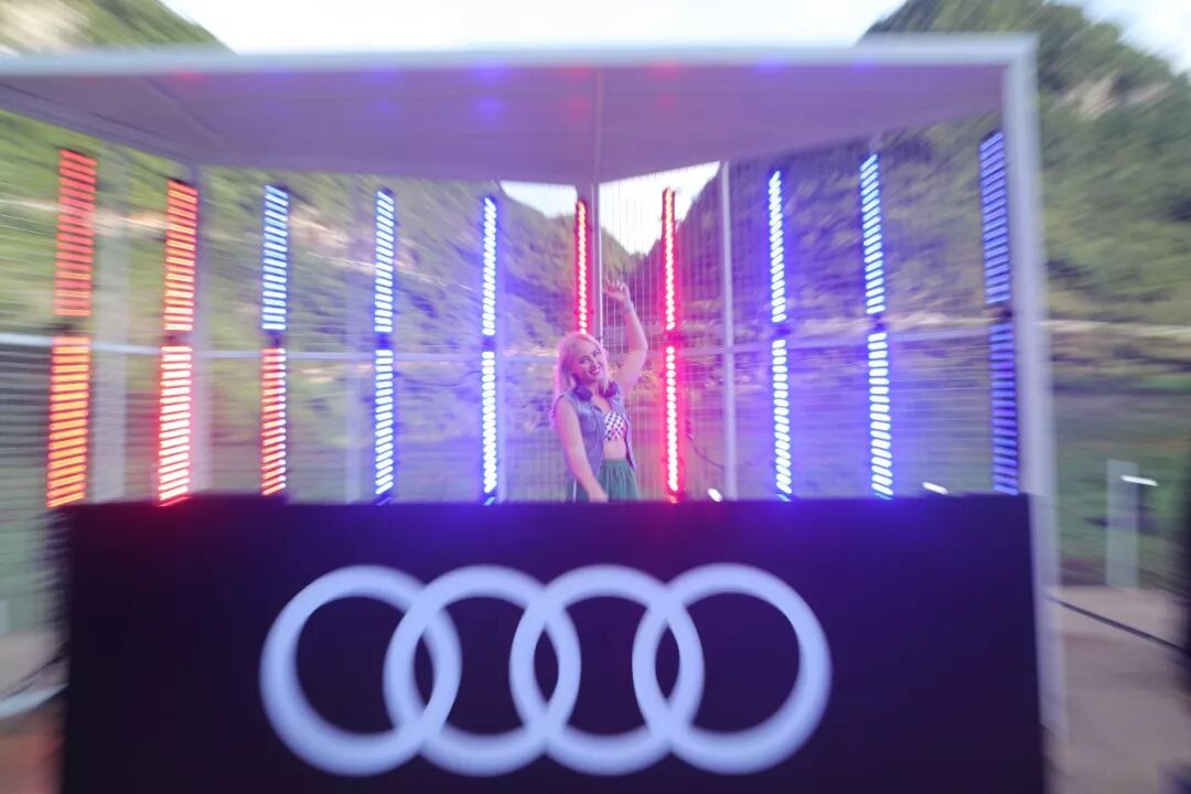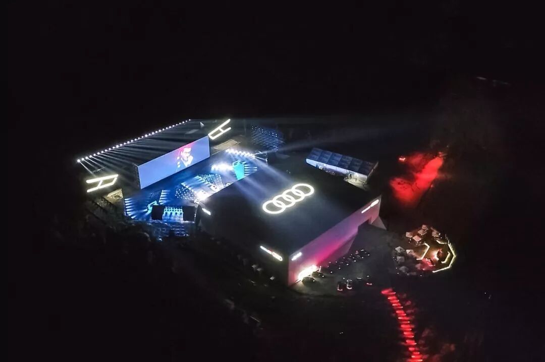 首先引入眼帘的是带有奥迪logo的热气球及动力滑翔伞