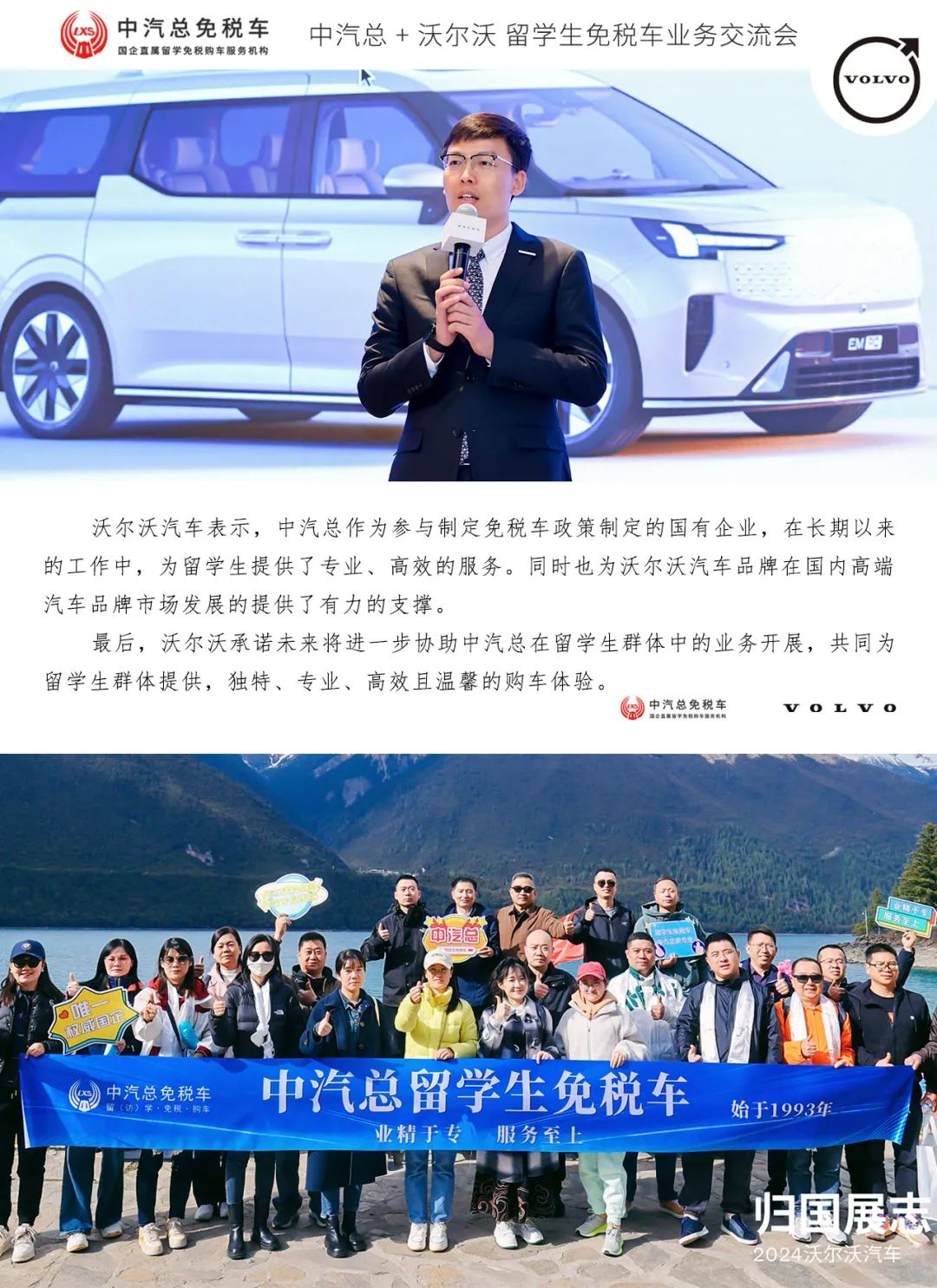 沃尔沃汽车表示,中汽总作为参与制定免税车政策制定的国有企业,在长期以来的工作中,为留学生提供了专业、高效的服务。同时也为沃尔沃汽车品牌在国内高端汽车品牌市场发展的提供了有力的支撑。