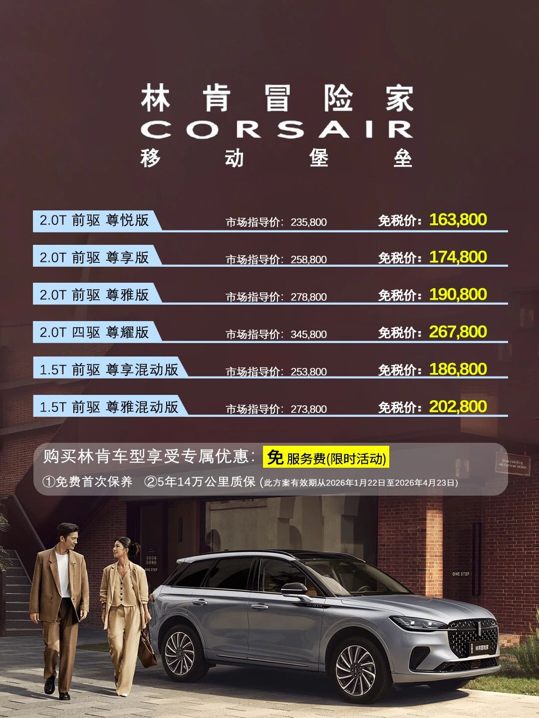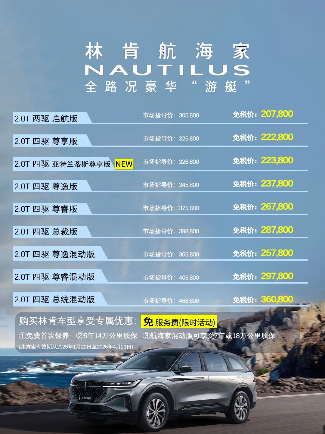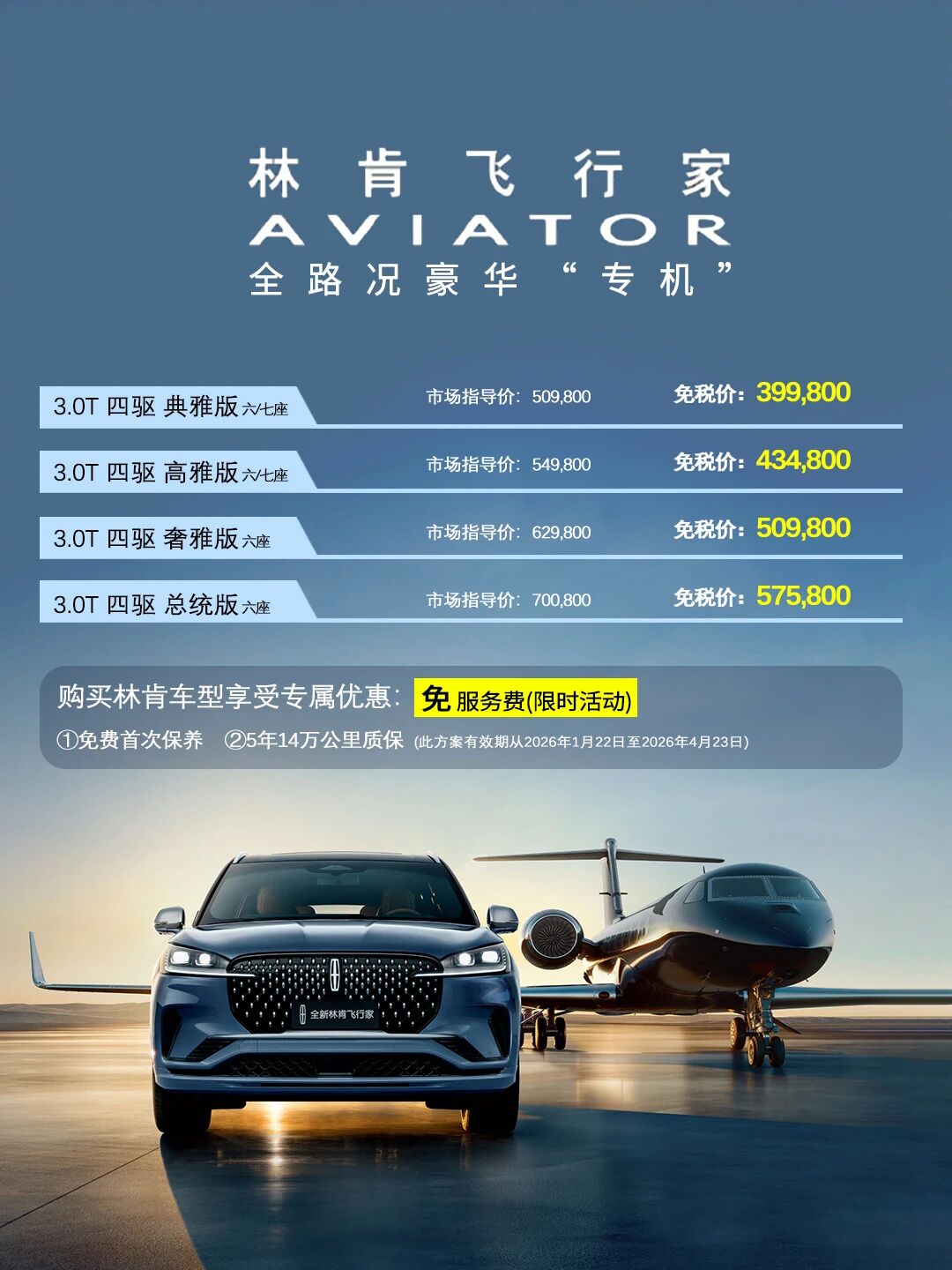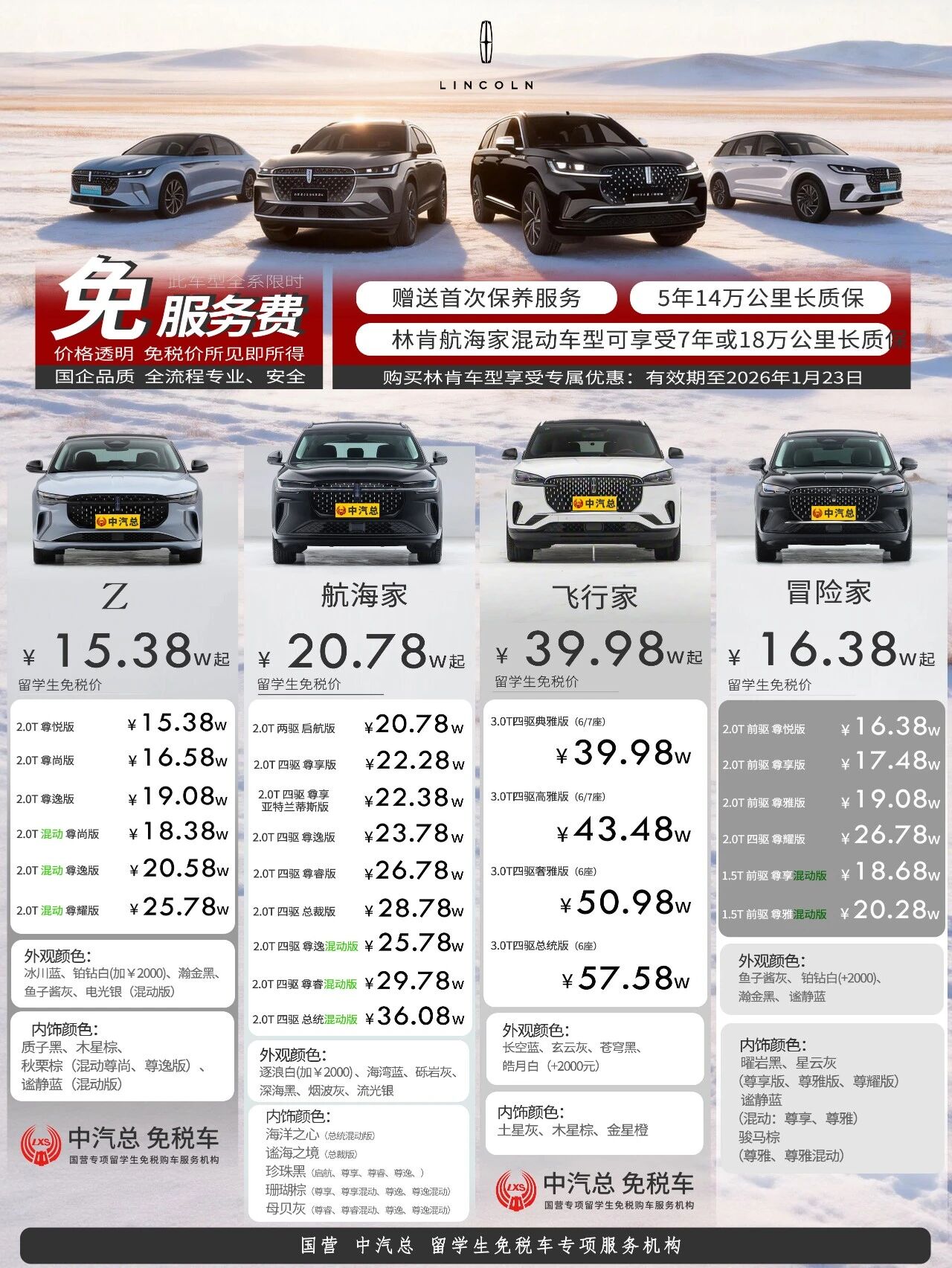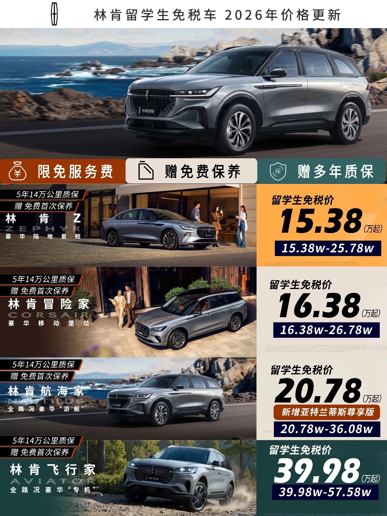 免服务费+免保养+赠质保,林肯留学生免税车价格更新
