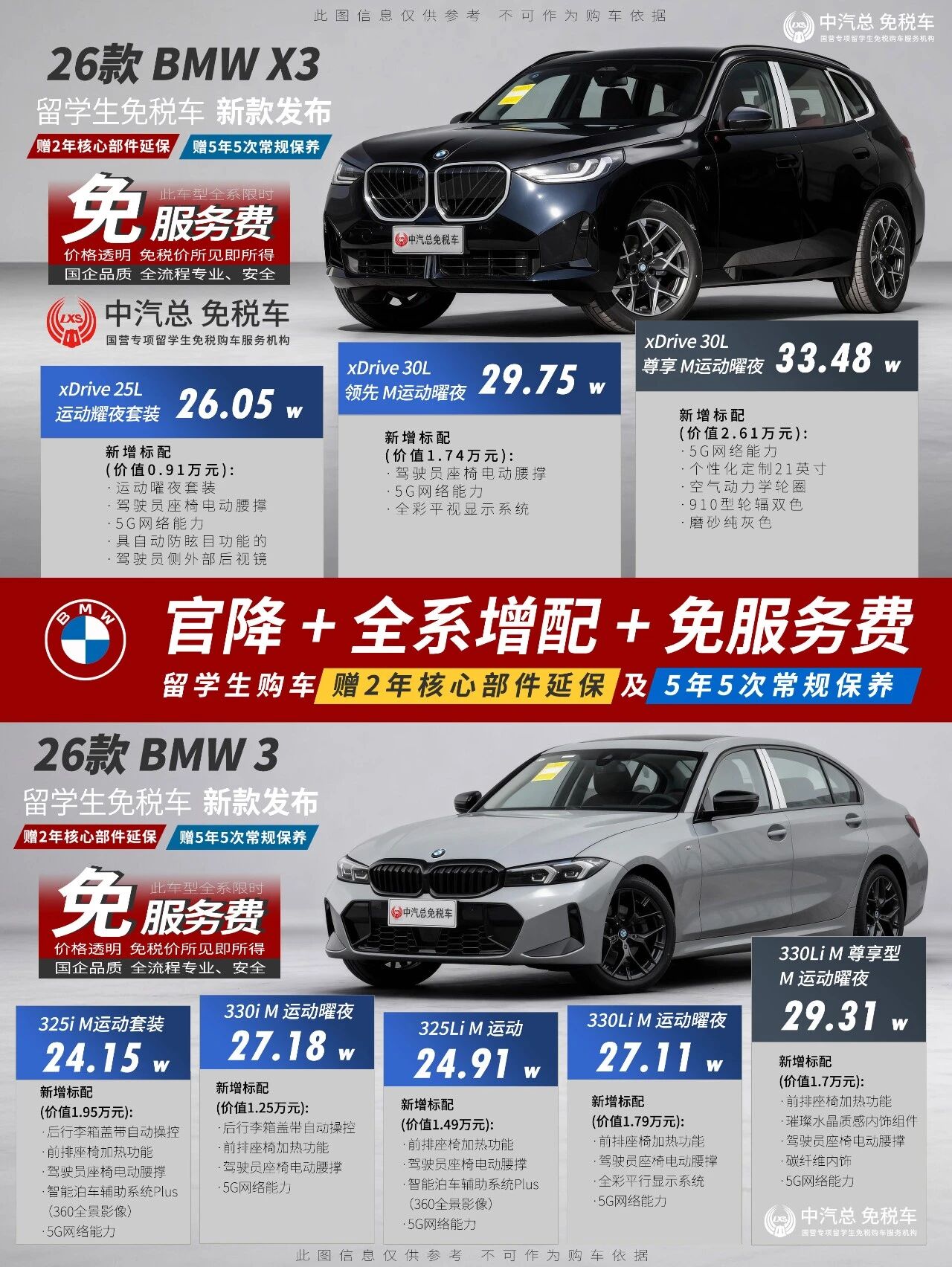 26款宝马3系/X3来了!官降+全系增配+免服务费+赠保养延保