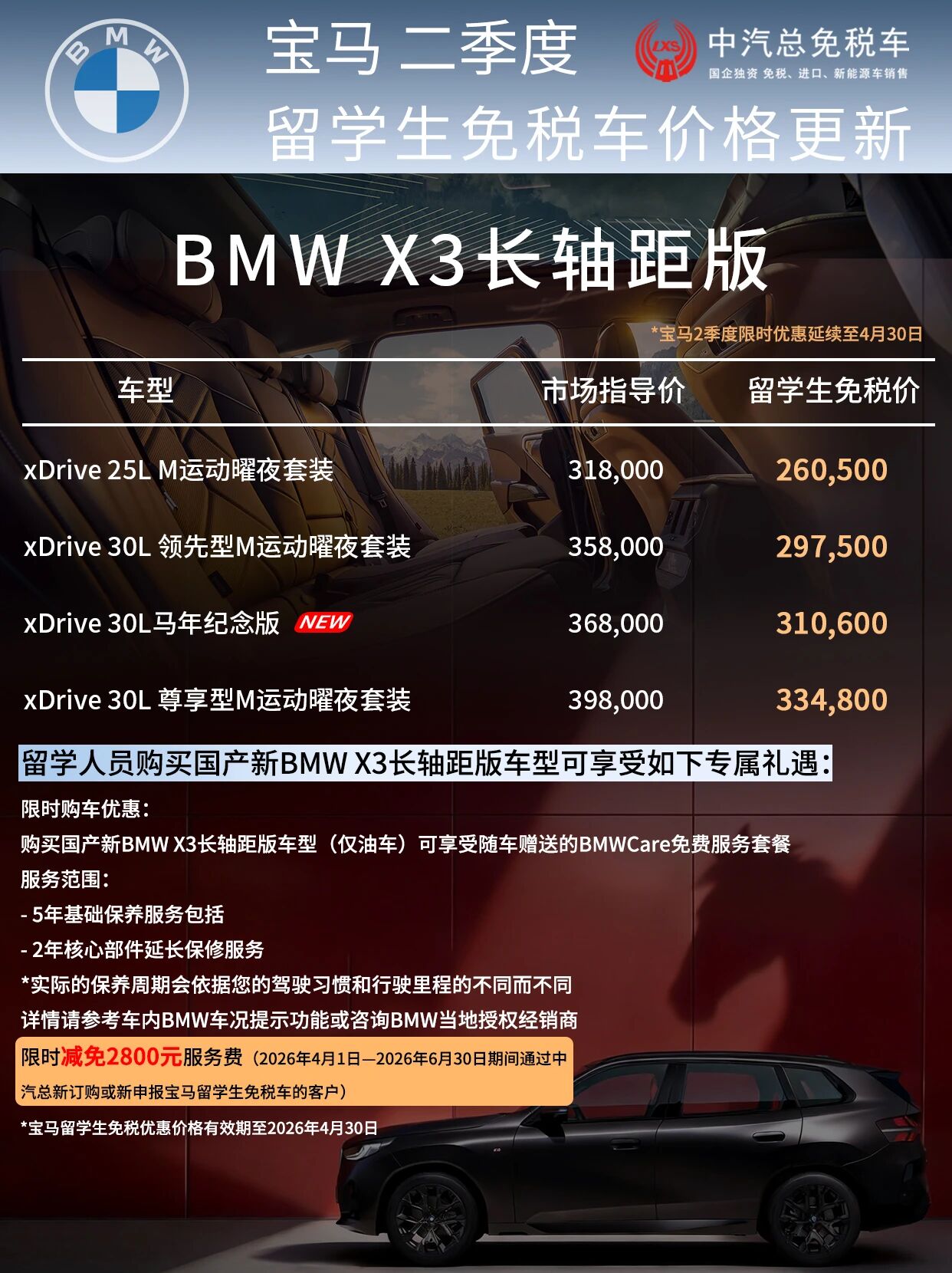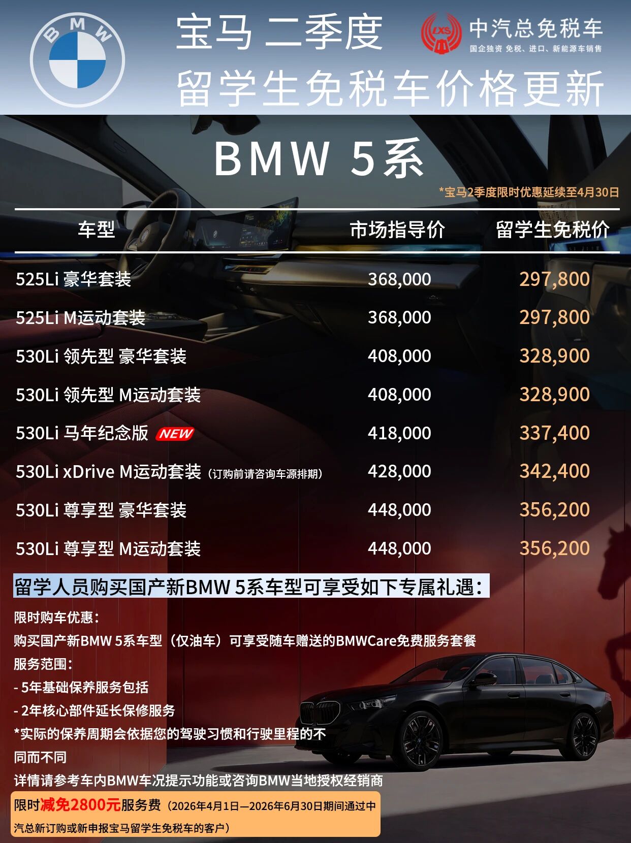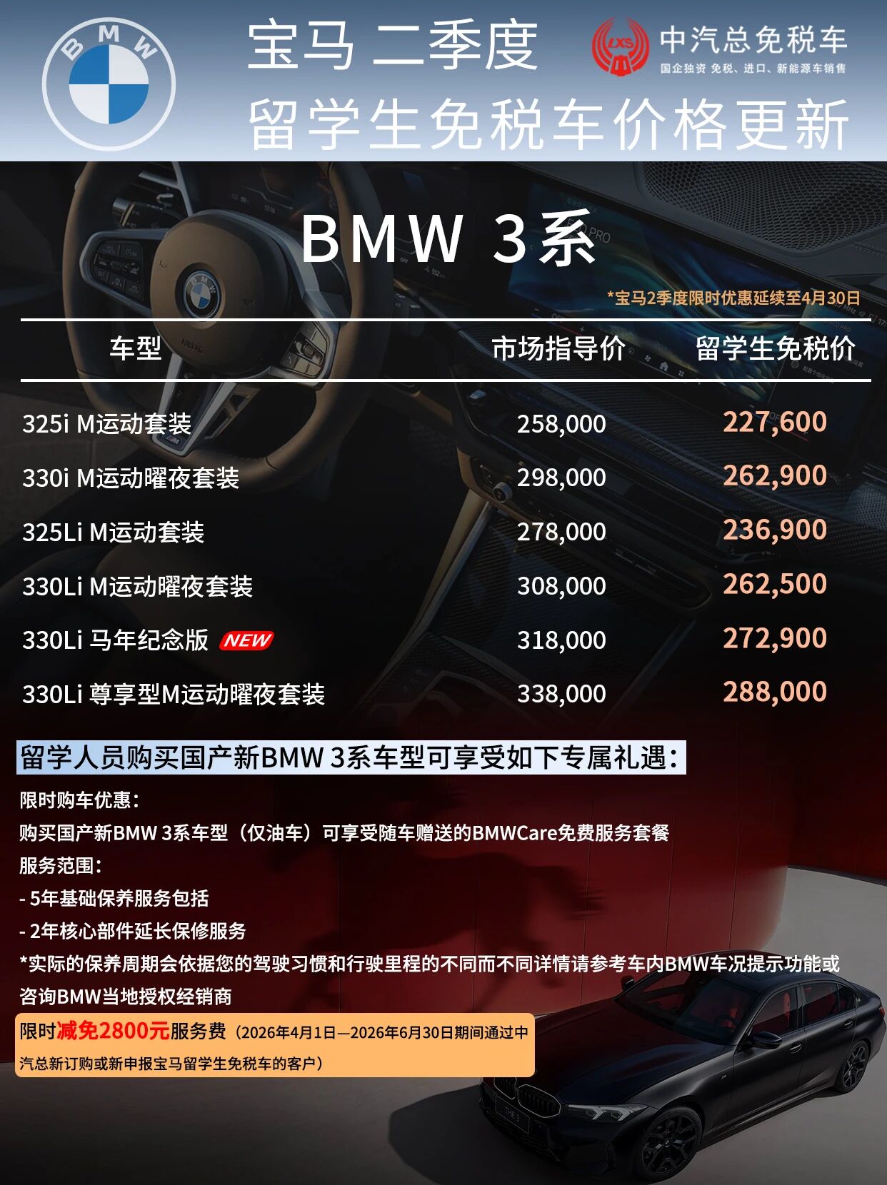 总结一下就是,宝马二季度优惠延续+赠保养及延保+中汽总限时免服务费